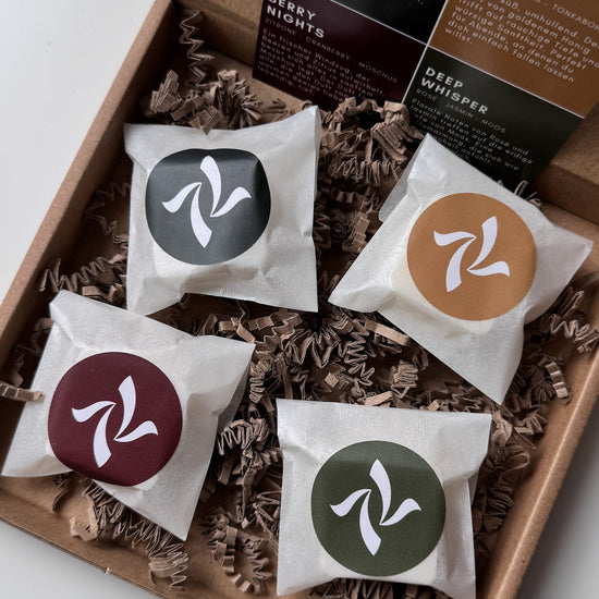 Jede Box enthält vier Duft-Melts mit folgenden Kompositionen: